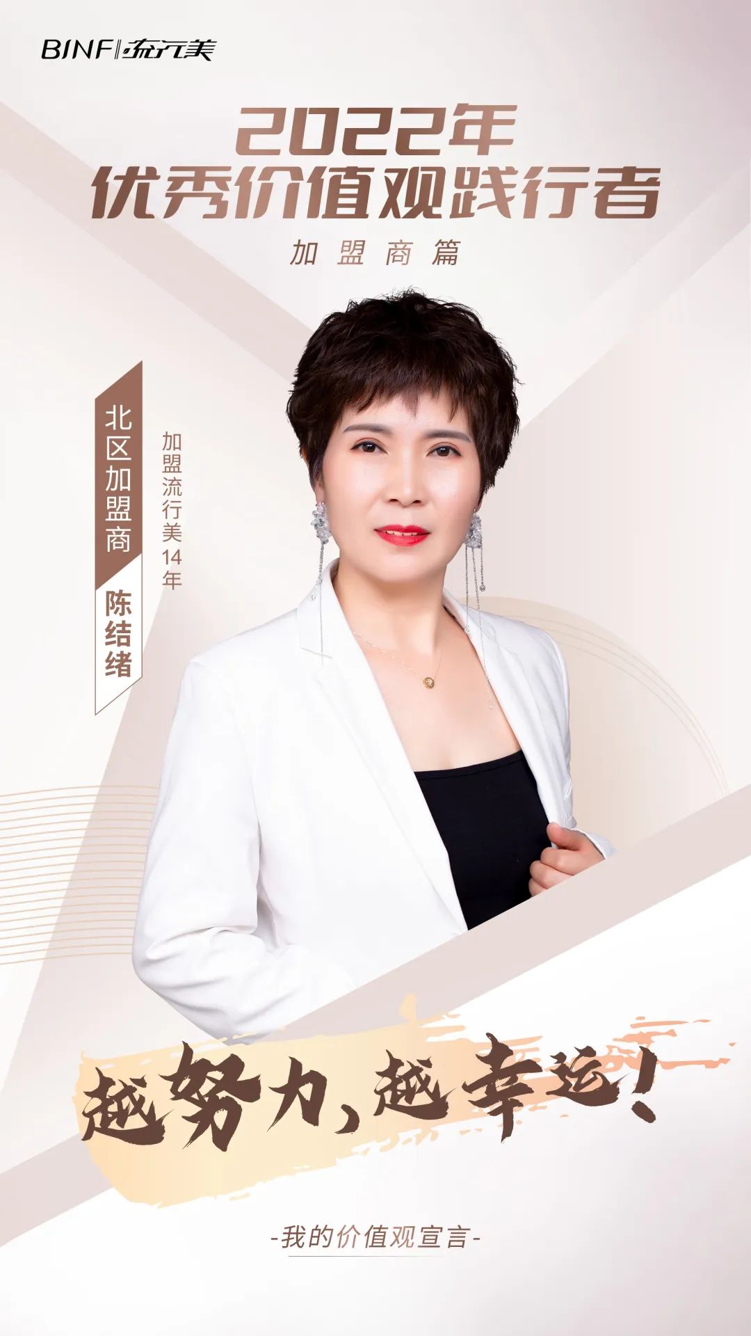 這種對學習的熱情與格物致知的精神也體現在她經營流行美過程中,公司的每場培訓她必到場;2021年,區域總監帶領區域加盟商到安陽和長沙游學,陳結緒立刻報名,第一時間帶上幾位店長一起去學習。