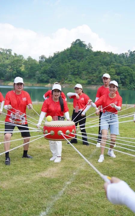 擊鼓顛球,一鼓能動十人心。拉緊、放松、一起動,找好節奏,保證球會在鼓上穩定地跳躍,這十分考驗團隊的步調一致性。在終端工作中,所有團隊應明確目標、注重團隊默契、團隊合力,才有可能創造佳績。